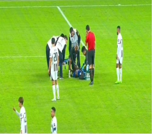 比赛第63分钟,阿苏埃在一次拼抢中受伤倒地,坚持了几分钟后仍感不适,被刚刚复出的米内罗替换下场。