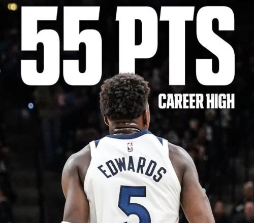 先看数据,本场比赛爱德华兹出战40分钟,33中19,三分球16中9,罚球9罚8中,疯狂拿下55分4篮板3助攻。